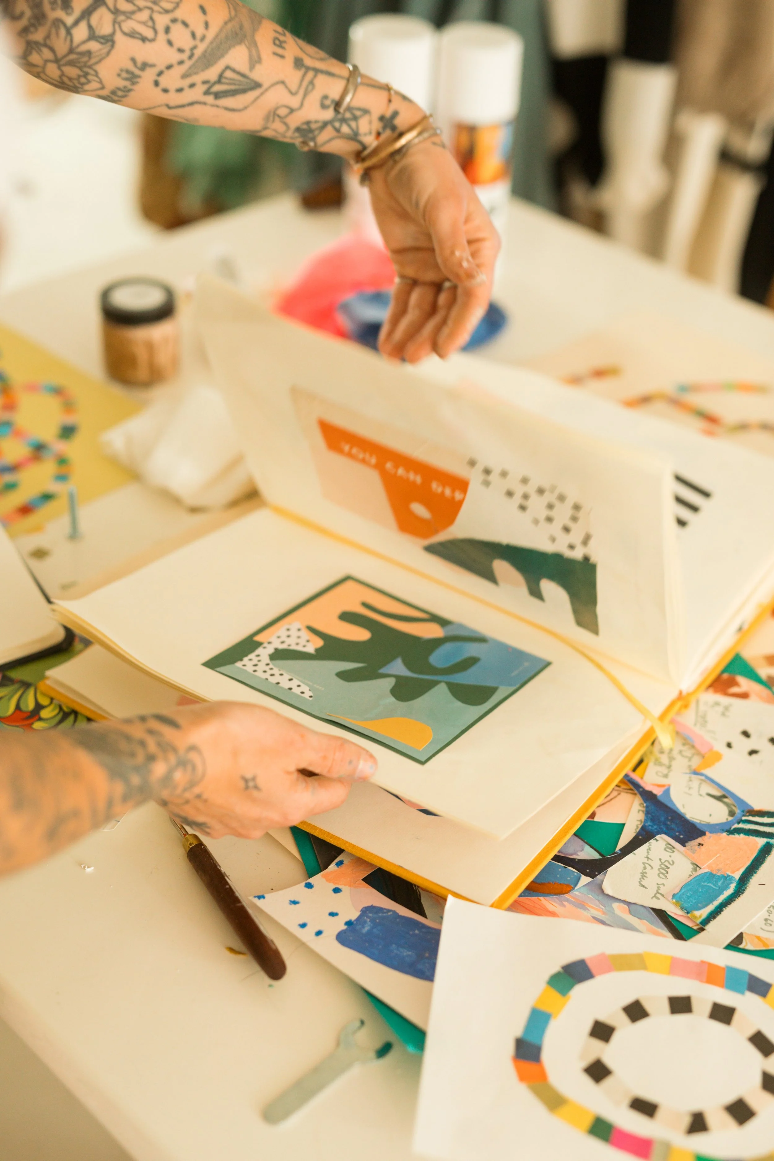Ashley is a Minnesota native, who splits her time between Minneapolis and Des Moines, IA. Ashley is a multi-disciplinary artist, muralist, and designer whose work is defined by a signature, highly recognizable shape language. Whether she is composing an intimate collage or a large-scale environmental mural, her work maintains a consistent visual through-line that celebrates color, organic form, and the "beautiful accident."