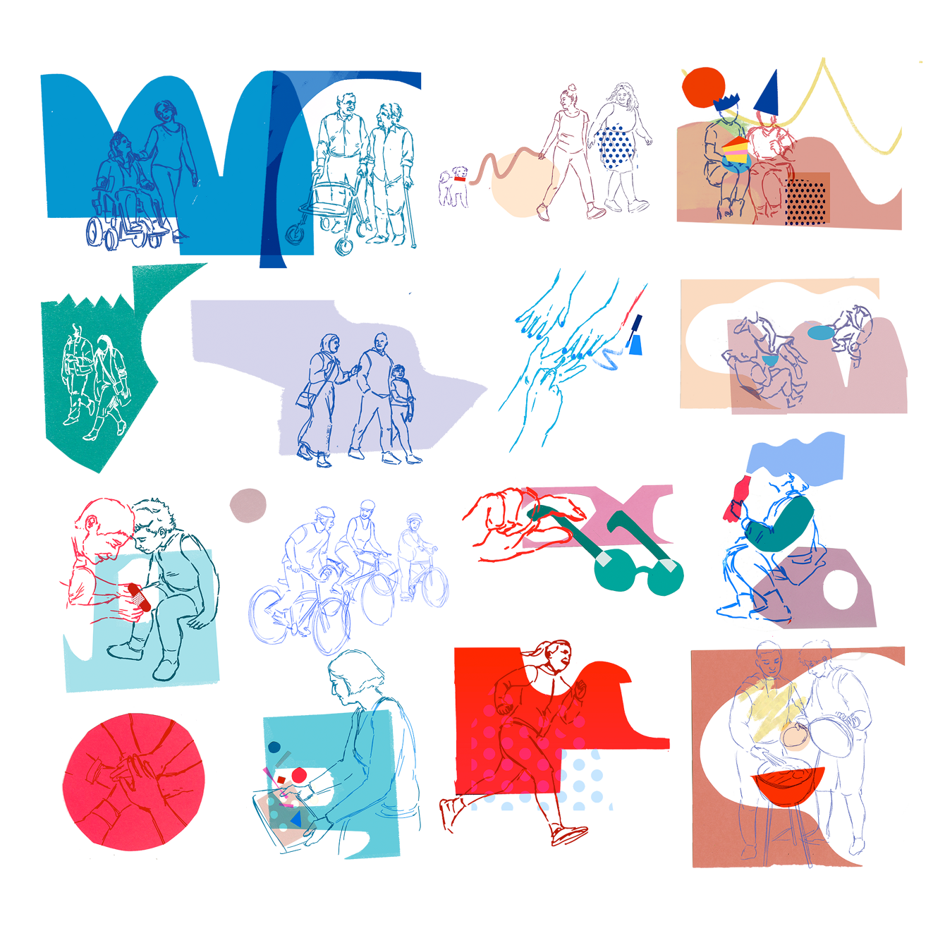 The artwork reflects Walgreens' guests by highlighting human moments, showing diverse communities that Walgreens serves, and evoking Walgreens’ mission of more joyful lives through better health.