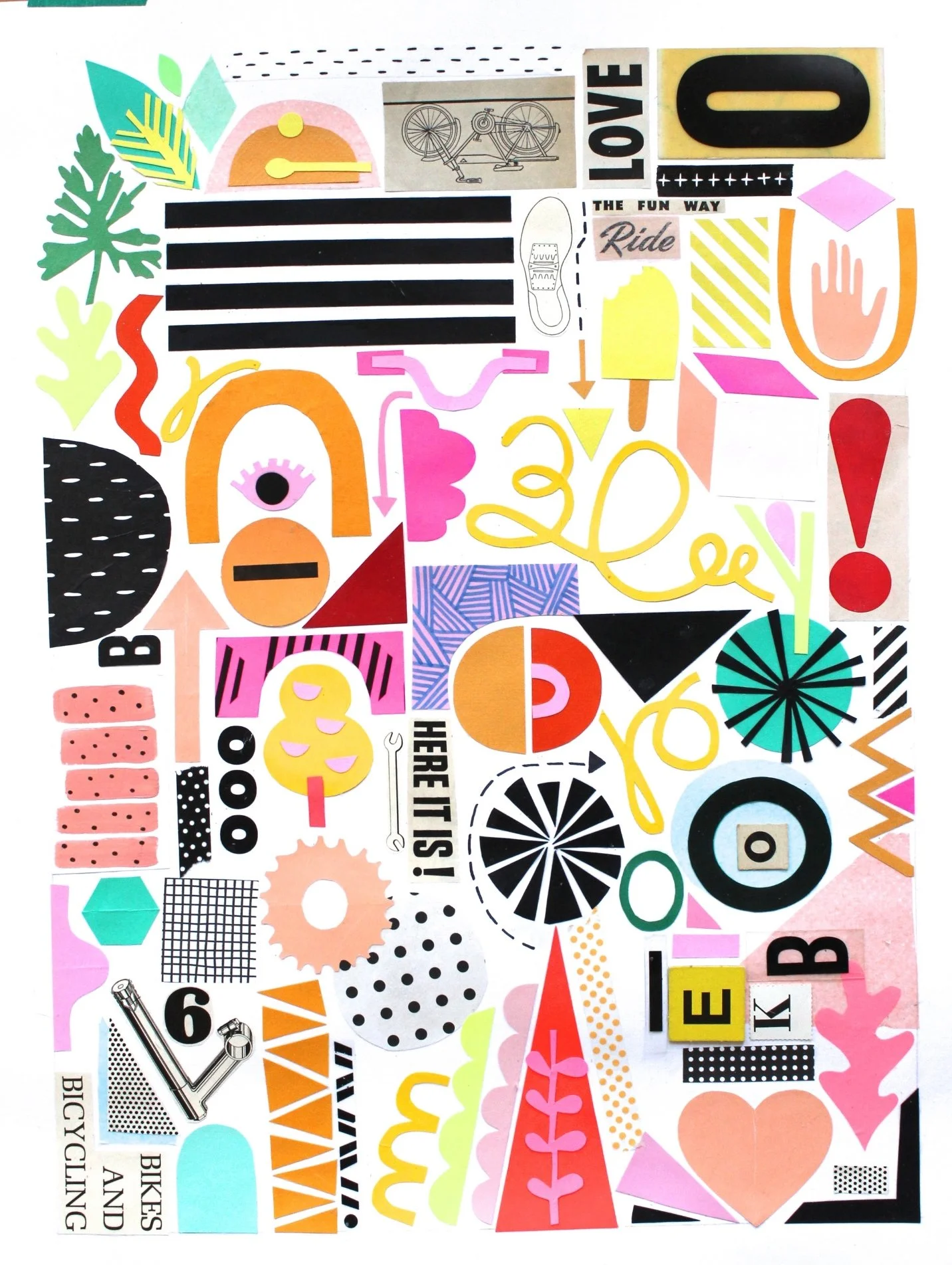 Screen print poster for Artcrank Minneapolis, 2015. Artcrank is an art show dedicated to showcasing bike-inspired posters. I started with an analog process, using cut-out paper, tissue, and vintage ephemera to create a collage inspired by bike culture and the summer which then got translated to screen printing to create a series of 100 limited edition prints.