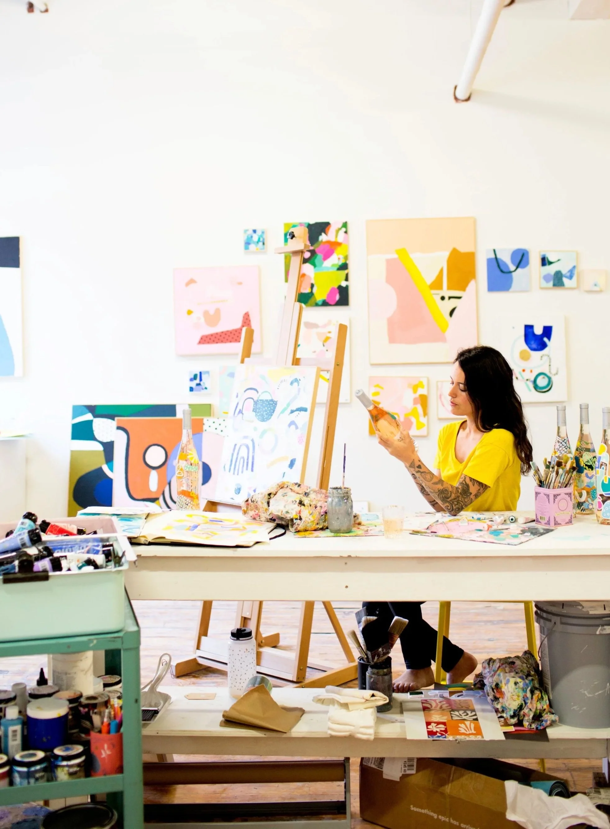 Minuty rose X Ashley Mary artist collaboration launched Spring 2018. Minuty's vineyards are located in St. Tropez in the French Riviera. I worked closely with Minuty and agency Malherbe to come out with a limited edition bottle for their 2017 vintage rose that celebrates the energy and vibrancy that is St. Tropez in the summer. To gain inspiration for the bottle’s design, I traveled to St. Tropez in 2017 to visit the vineyards and document my time in the town. I was in love with all the colors and textures and spent a lot of time sketching and painting that later influenced the palette and shapes of the final bottle’s design A launch event was held in Paris in early 2018, where I also did a live painting.